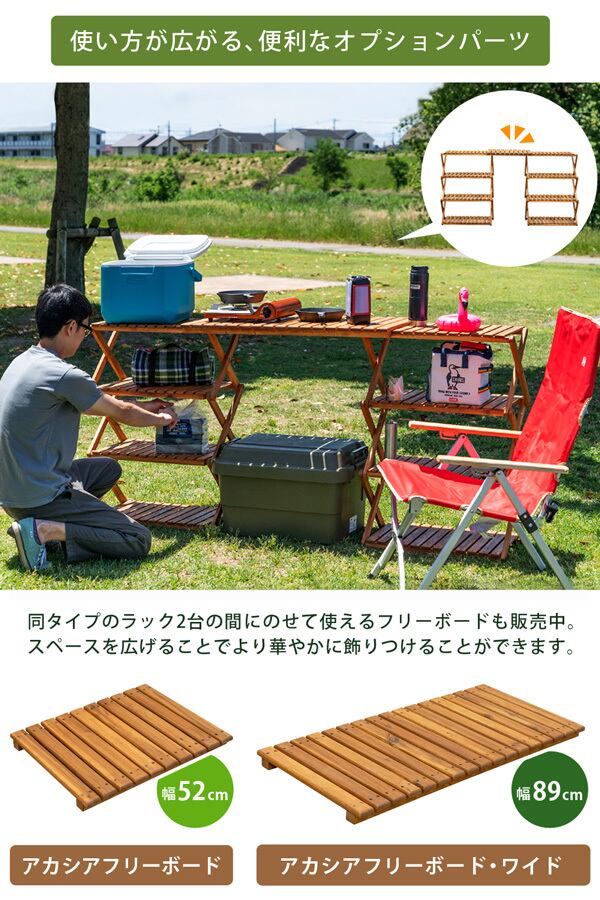 アカシア 折り畳みラック 4段 ワイド